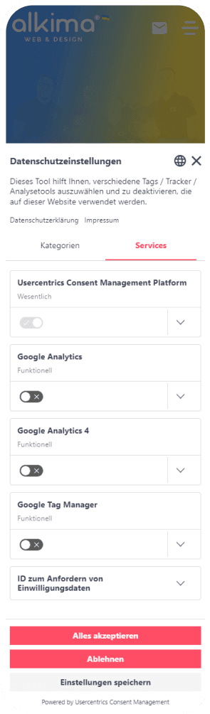 Usercentrics and alkima WEB & DESIGN ®